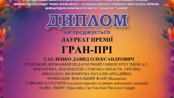 Гран-прі здобувача вищої освіти другого (магістерського) рівня на міжнародному конкурсі