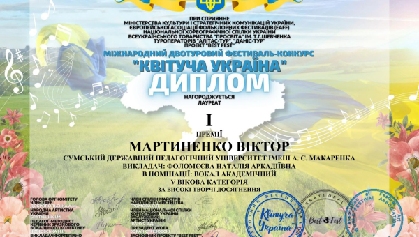 Здобувач вищої освіти ННІ культури і мистецтв знову переміг на міжнародному конкурсі